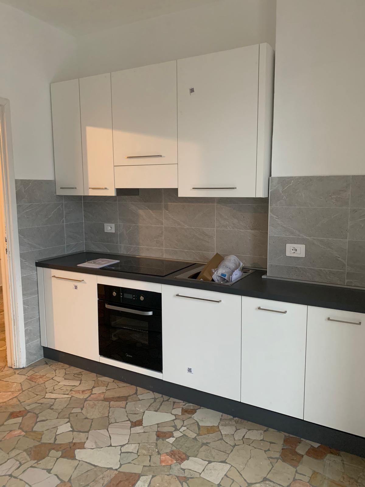 L’immobile situato al 5° piano di un palazzo degli anni ’60, con ascensore, viene consegnato arredato solo di cucina, la presenza di 2 balconi offre una doppia esposizione che lo rende molto luminoso.