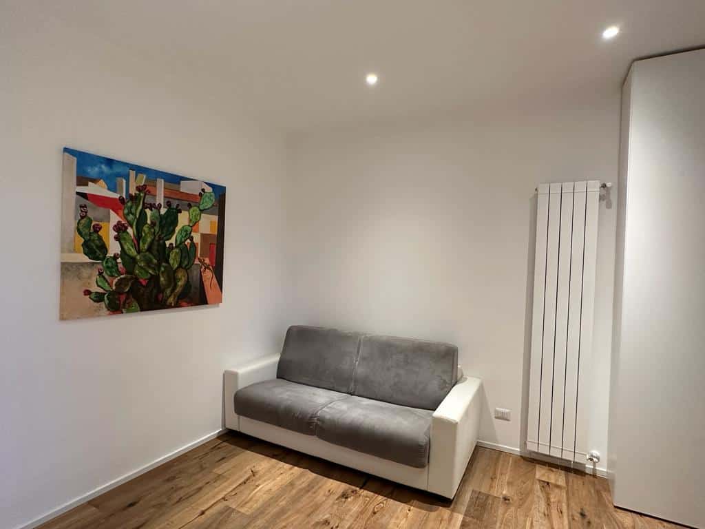 L’immobile è composto da: un ampio ingresso che affaccia nel soggiorno con cucina a vista, anticamera, ampia e luminosa camera con cabina armadio e bagno con ampio box doccia. E’ dotato di impianto di aria condizionata.