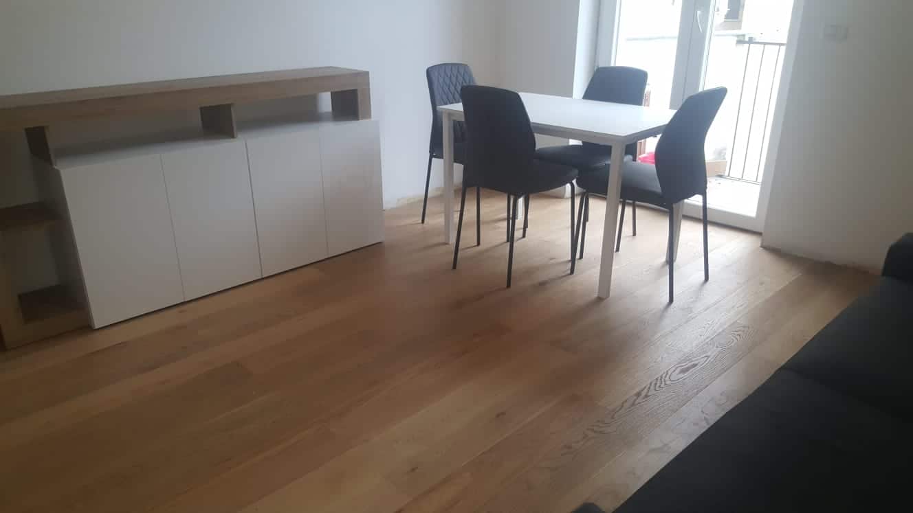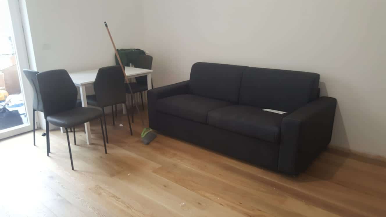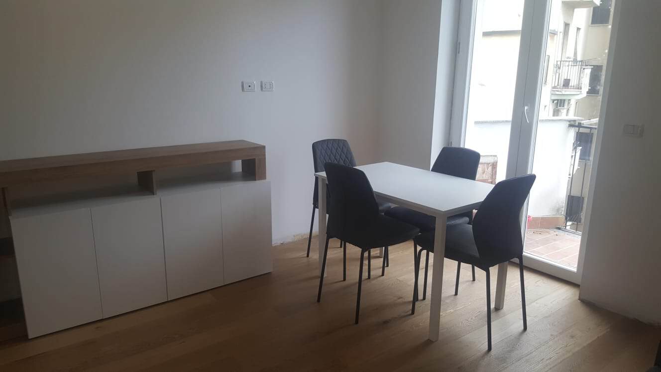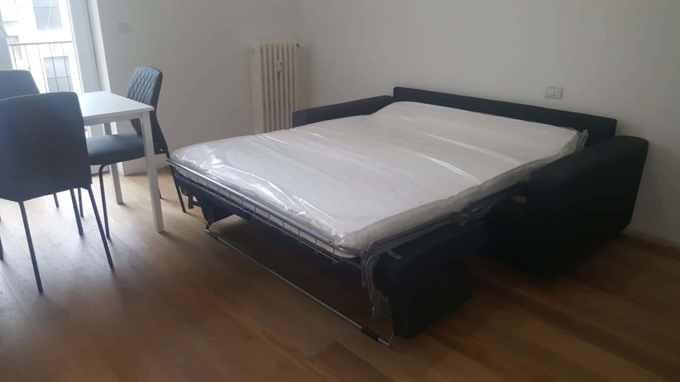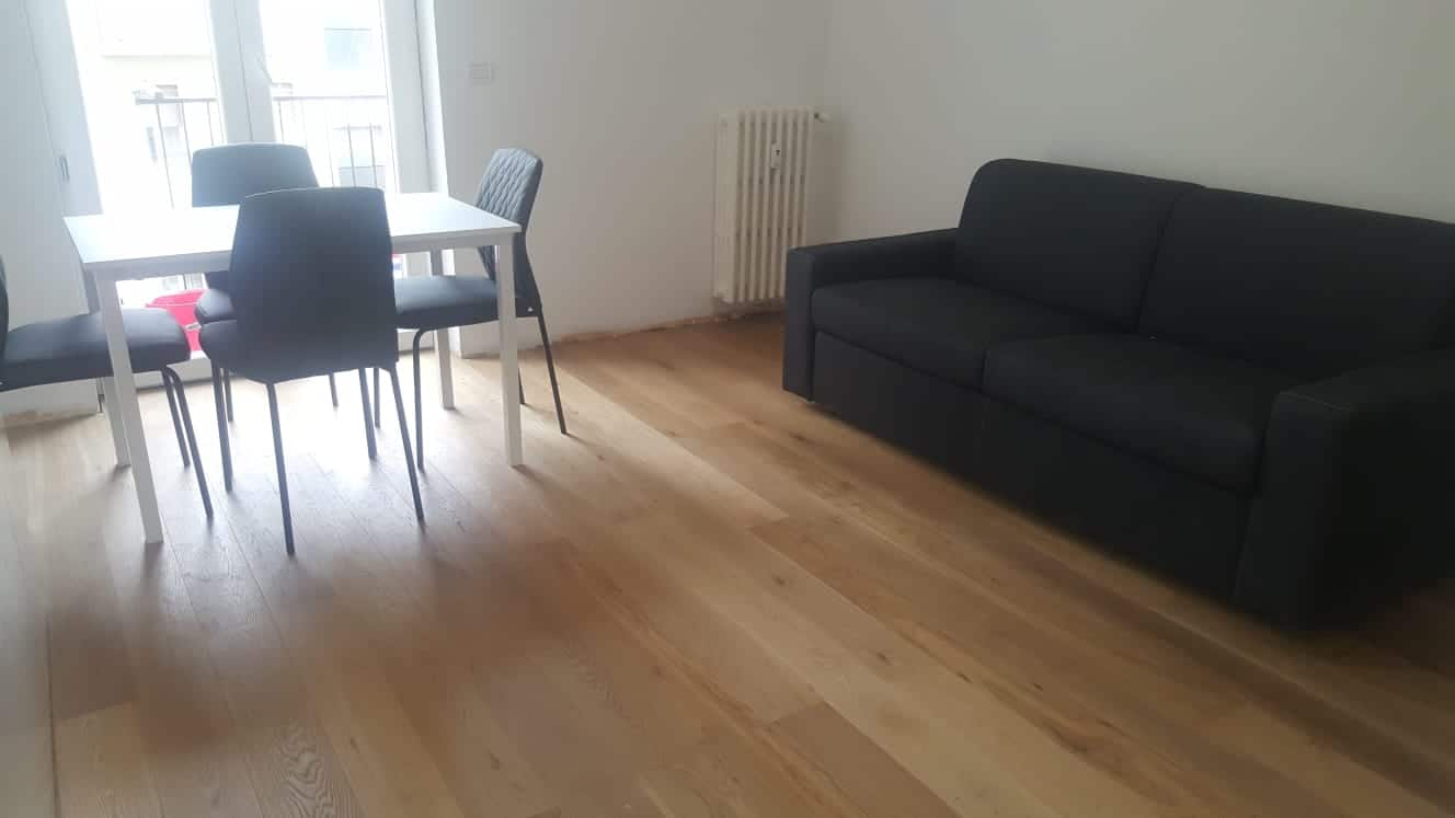 L’immobile viene affittato arredato con mobili nuovi, dotato di aria condizionata, parquet ovunque, doppi vetri e lavatrice.