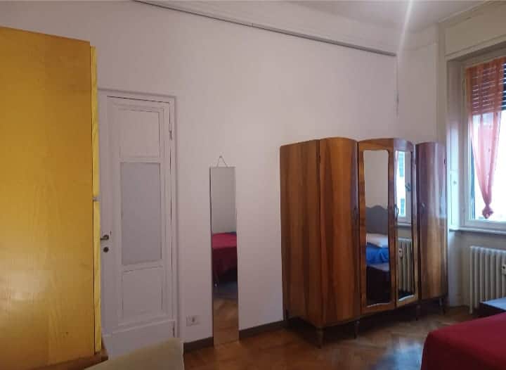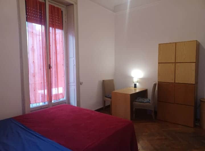 L’appartamento è composto da: ingresso, 3 stanze, cucina abitabile e bagno in condivisione. La stanza viene consegnata con letto matrimoniale, tv nuova, scrivania con due sedie e doppio armadio.